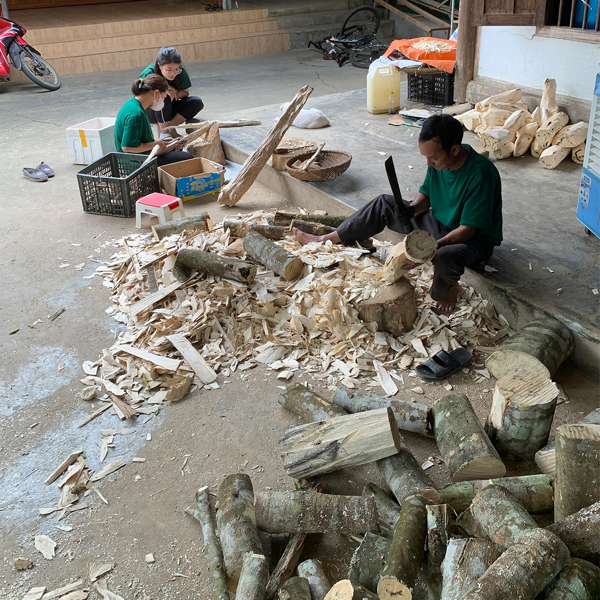 (Công đoạn sơ chế đầu tiên để đánh giá sới trầm trong cây dó bầu
